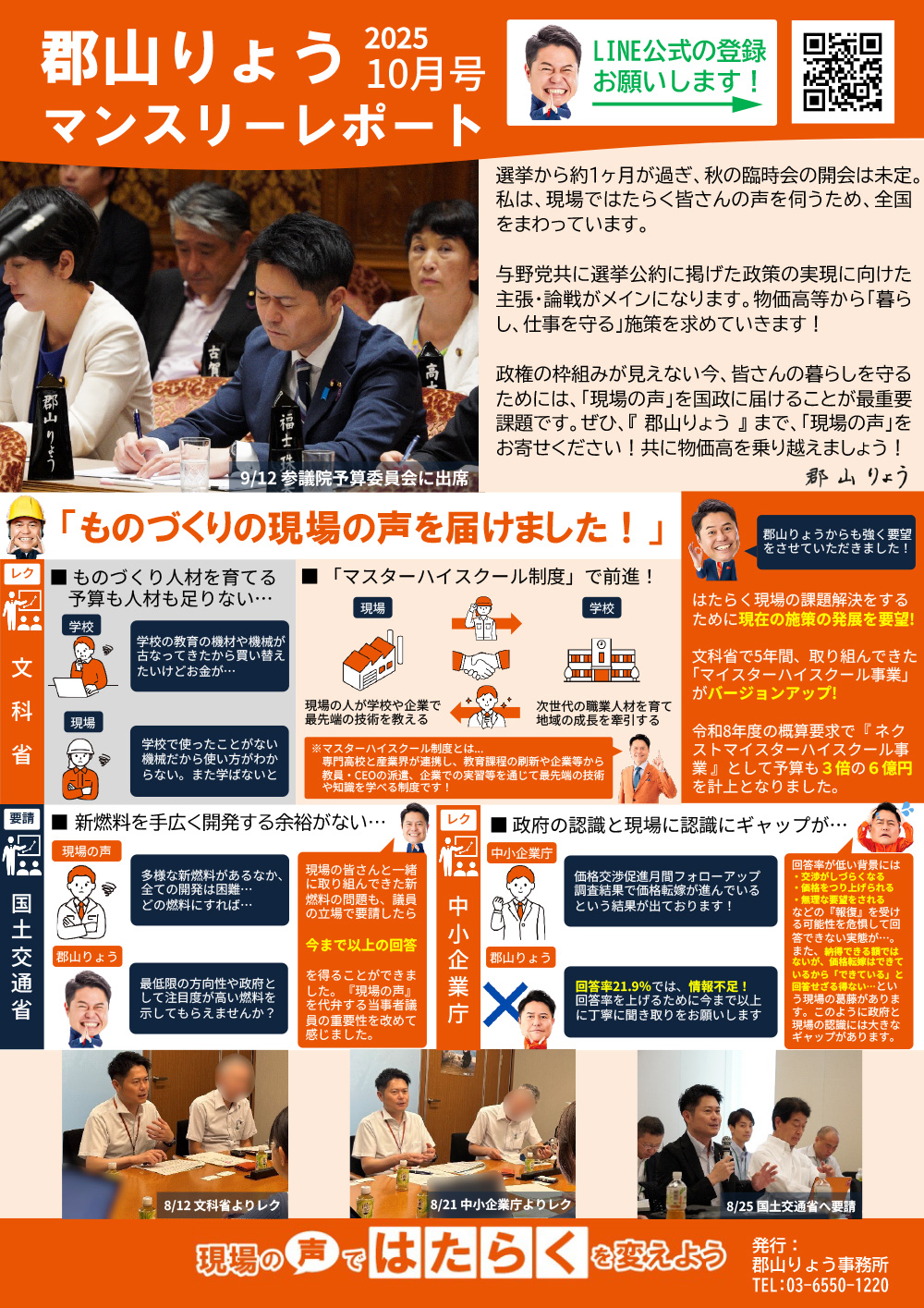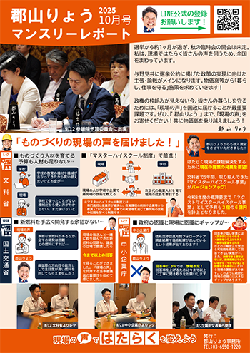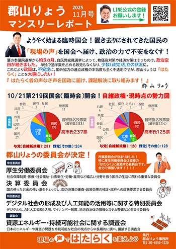 表面:ようやく始まる臨時国会!/郡山りょうの委員会が決定!