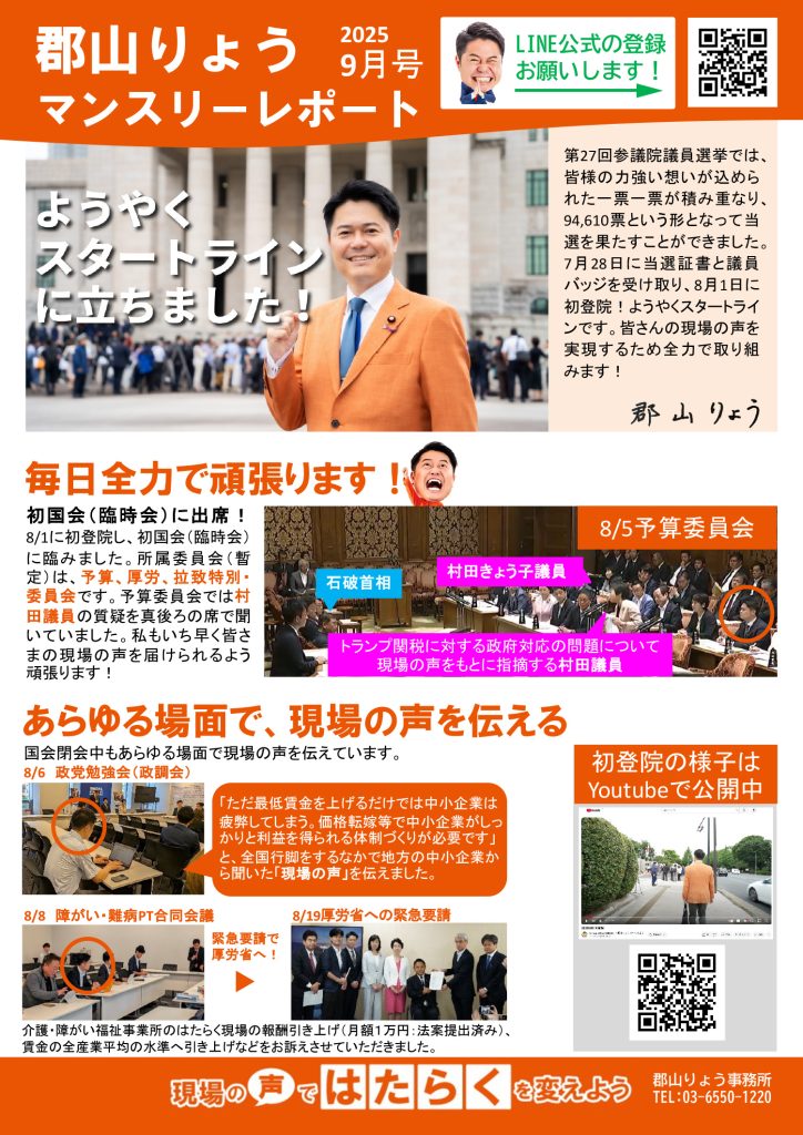 ようやく始まる臨時国会!/郡山りょうの委員会が決定!
