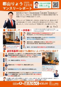 公式WEBサイトにて「郡山りょうのマンスリーレポート 12月号」を公開しました。